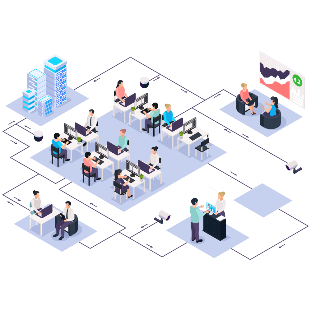 Es un sistema de gestión de puestos modular y configurable. Se adapta a las necesidades y tamaño de tu empresa.