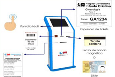 Puestos automáticos donde se dispensan tickets de atención (pueden ser de corre-turnos o de una cita previa